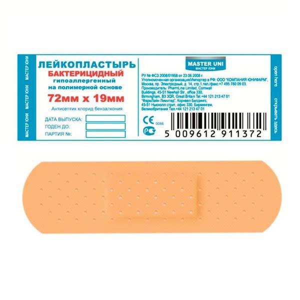 Лейкопластырь бактерицидный, Master Uni (Мастер Юни) р. 1.9смх7.2см 1 шт телесный: Инструкция по применению